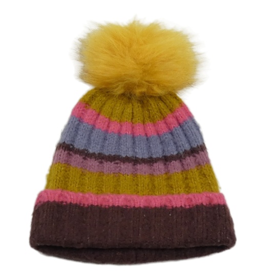 Barevná pruhovaná žebrovaná pletená čepice s bambulí George
