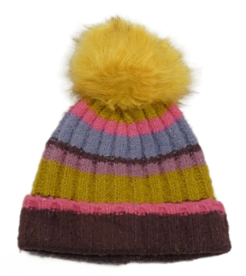 Barevná pruhovaná žebrovaná pletená čepice s bambulí George
