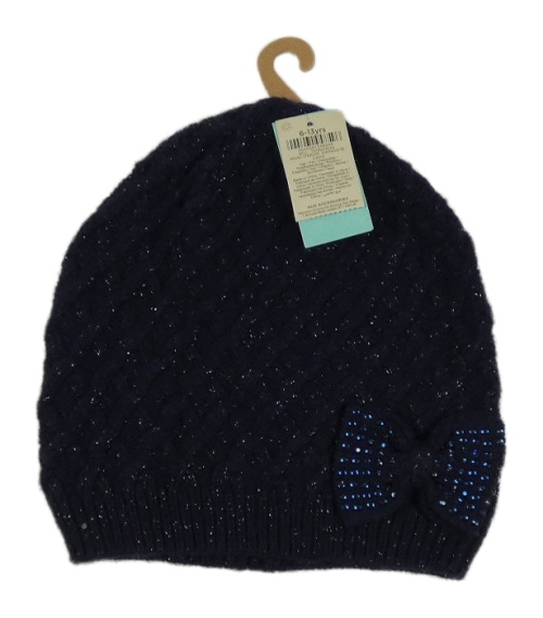 Nové - Tmavomodrá třpytivá čepice s mašlí Moonson