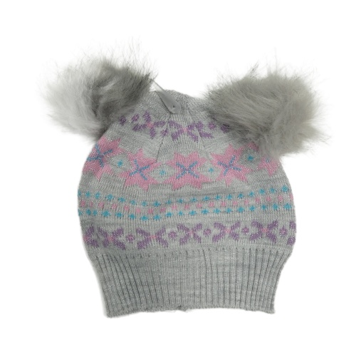 Světlešedo-barevná vzorovaná čepice s bambulí