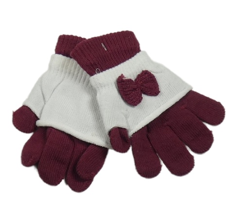 Nové - 2Set - Vínové prstové rukavice + bílé návleky s mašlí