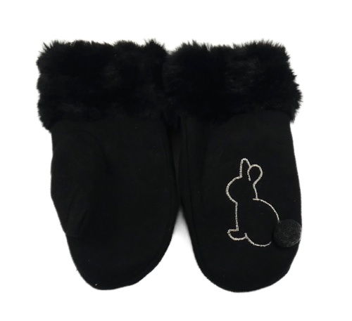 Černé semišové zateplené palcové rukavice s králíčkem a kožešinou