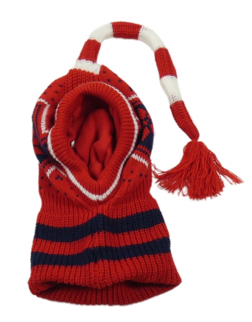 Červeno-tmavomodro-bílá pletená podšitá kukla