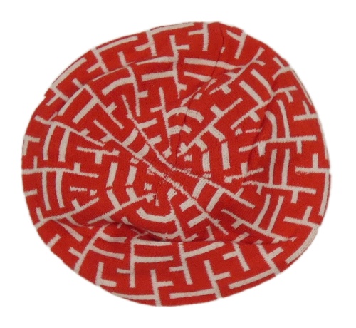 Červeno-bílý vzorovaný baret
