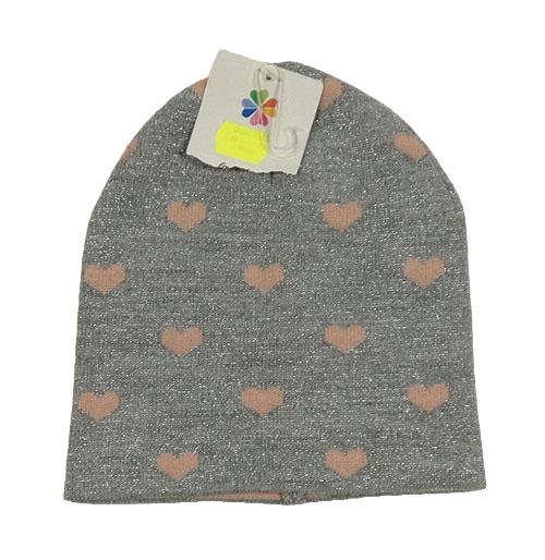 Nové - Šedá melírovaná třpytivá čepice se srdíčky Topolino