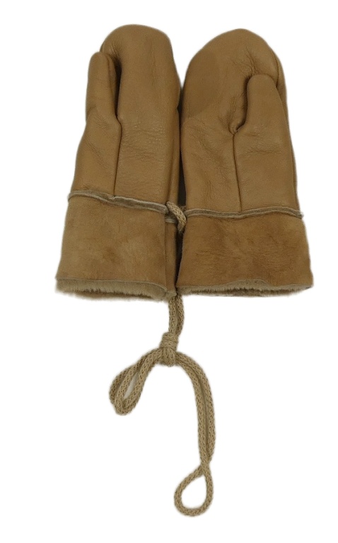 Hnědé koženo/ semišové zateplené palcové rukavice na provázku