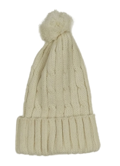 Smetanová žebrovaná vzorovaná pletená čepice s bambulí