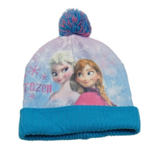 Modro-fialová fleecovo/pletená čepice s Frozen a bambulí