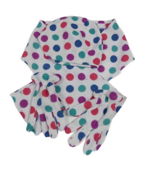 3Set - Bílo-barevná fleecová čepice + šála + prstové rukavice