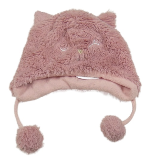 Růžová kožešinová čepice s bambulemi - kočička C&A