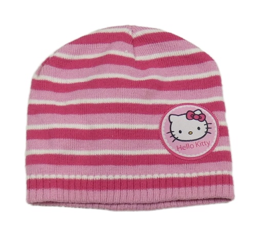 Růžovo-bílá pruhovaná pletená čepice s Kitty Sanrio