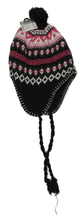 Nové - černo-bílo-růžová vzorovaná čepice s bambulí