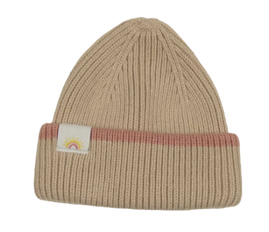 Pudrová žebrovaná pletená čepice s nášivkou Leigh Tucker