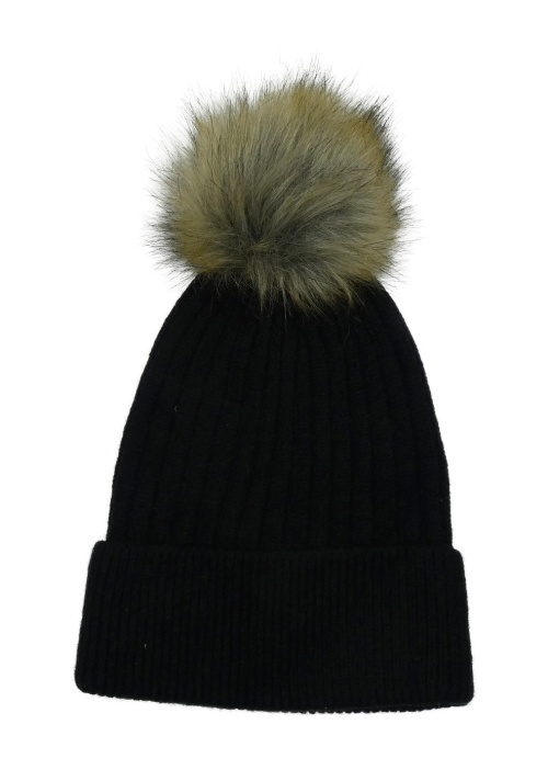Černá pletená čepice s bambulí