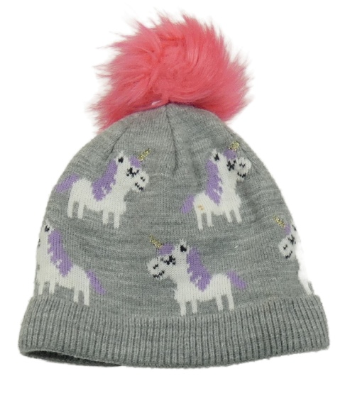 Šedá melírovaná čepice s jednorožci a bambulí George