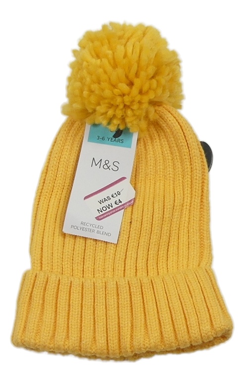 Nové- Žlutá žebrovaná čepice s bambulí M&S