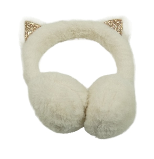 Smetanové chlupaté klapky na uši s oušky - kočička
