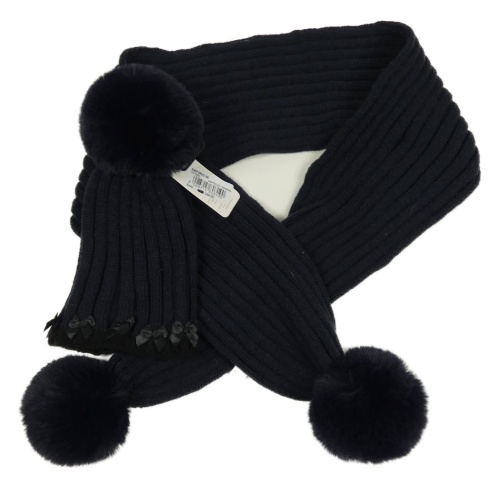 Nové - 2Set - Tmavomodrá žebrovaná pletená čepice s mašličkami a bambulí + šála envivia