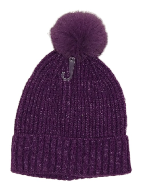 Nové - fialová melírovaná žebrovaná čepice s bambulí