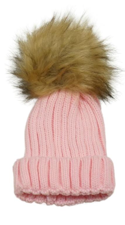 Růžová pletená čepice s bambulí