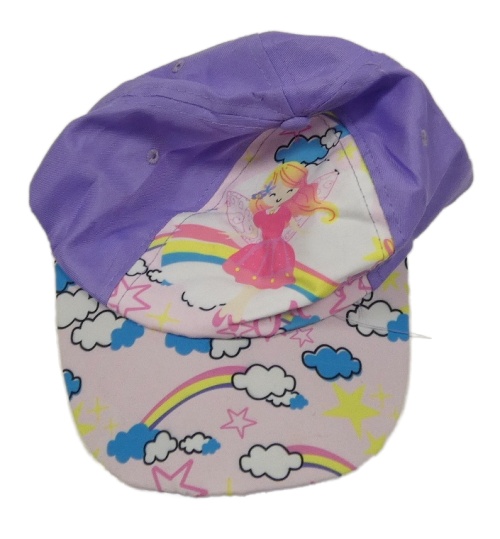 Světlerůžovo-fialová kšiltovka s vílou a duhami a obláčky