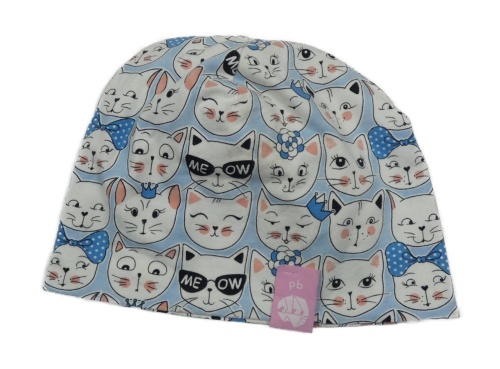 Světlemodrá čepice s kočičkami