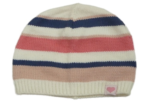 Smetanovo-růžovo-tmavomodrá pruhovaná pletená čepice