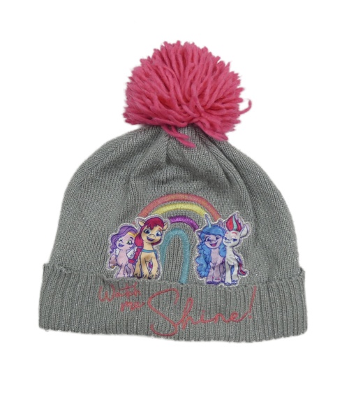 Šedá pletená čepice s duhou a jednorožci a bambulí George