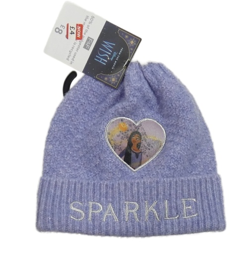 Nové - Lila čepice s dívkou a nápisem a bambulí - Wish Disney