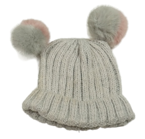 Šedá čepice s růžovo-šedými bambulemi Nutmeg