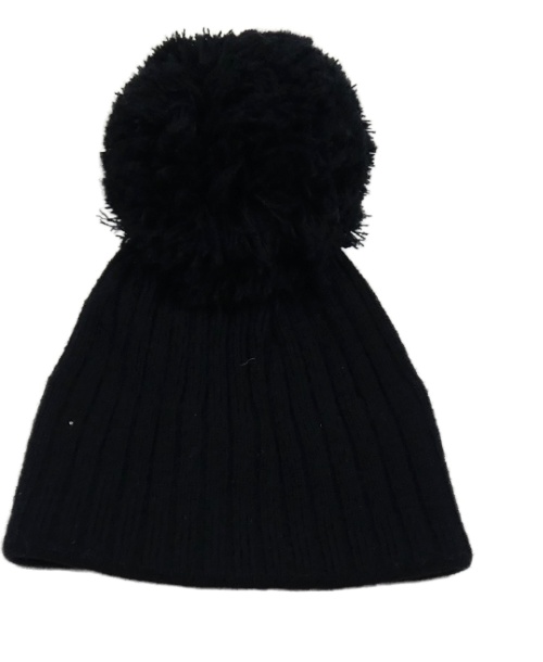 Tmavomodrá žebrovaná pletená čepice s bambulí