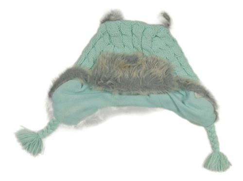 Mintová vzorovaná pletená podšitá čepice s kožešinou Mountain Warehouse