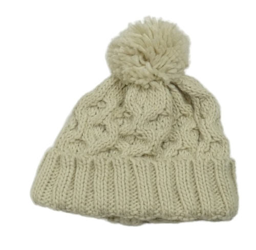 Béžová pletená čepice s bambulí