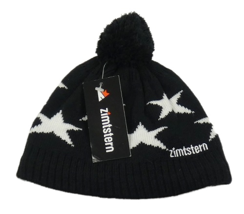 • Nové - černá pletená čepice s bílými hvězdičkami a logem a bambulí Zimstern