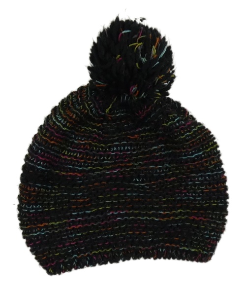 Černo-barevná pletená čepice s bambulí