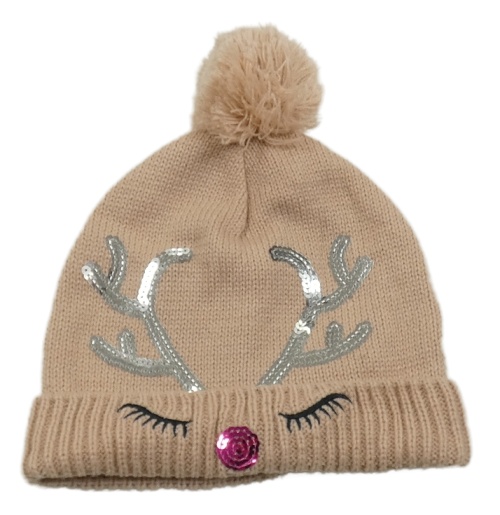 Růžová čepice se sobem a bambulí