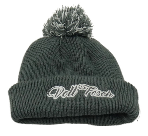 Tmavošedá pletená čepice s nápisem a bambulí