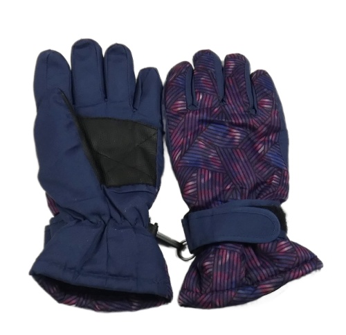 Tmavomodro/fialovo/růžové vzorované šusťákové zimní rukavice