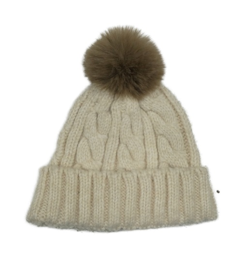 Smetanovo-světlebéžová melírovaná vzorovaná čepice s bambulí Tu