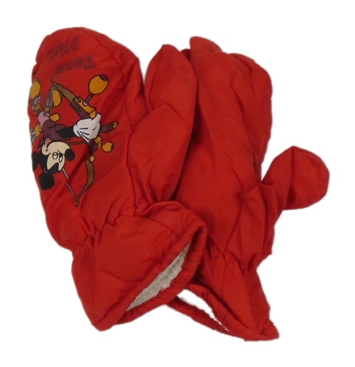 Červené šusťákové palcové zimní rukavice s Mickeym