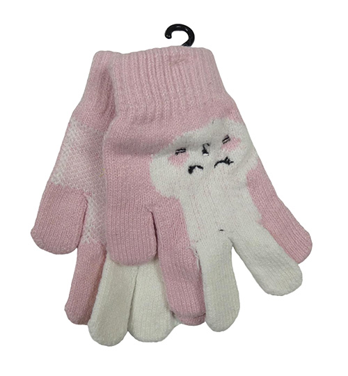 Nové - Růžovo-bílé prstové rukavice s králíky X-Mail