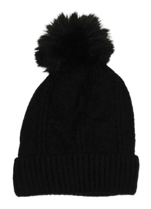 Černá vzorovaná pletená zateplená čepice s bambulí