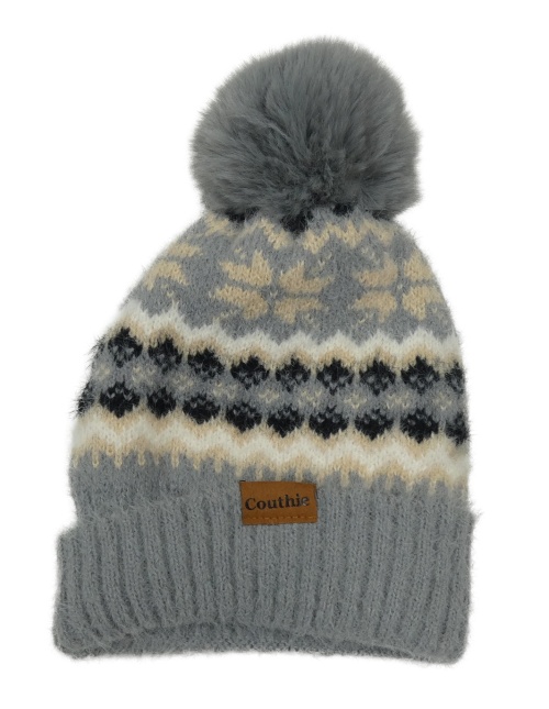 Šedá pletená čepice se vzorem a bambulí