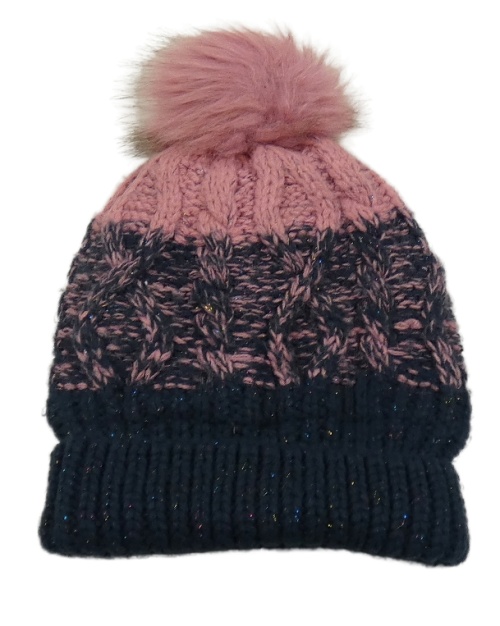 Tmavomodro-růžová melírovaná třpytivá čepice s bambulí Yigga