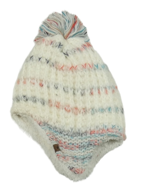 Smetanová pruhovaná pletená čepice s bambulí