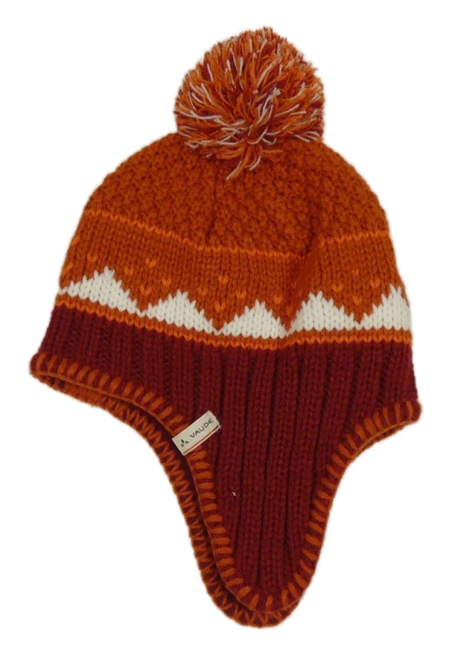 Oranžovo-bílo-vínová čepice s bambulí