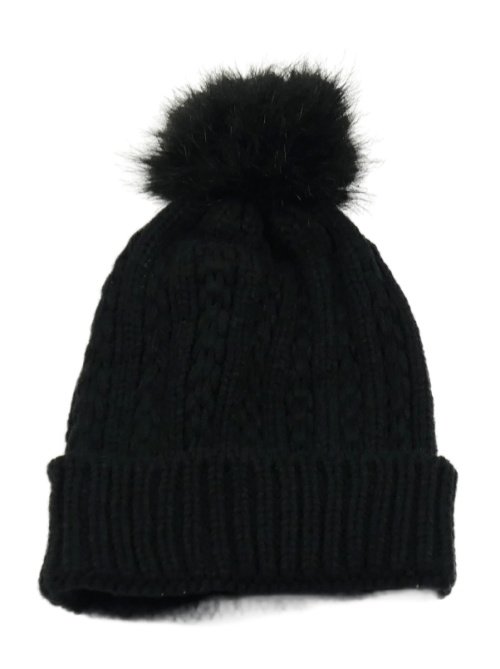 Černá vzorovaná čepice s bambulí