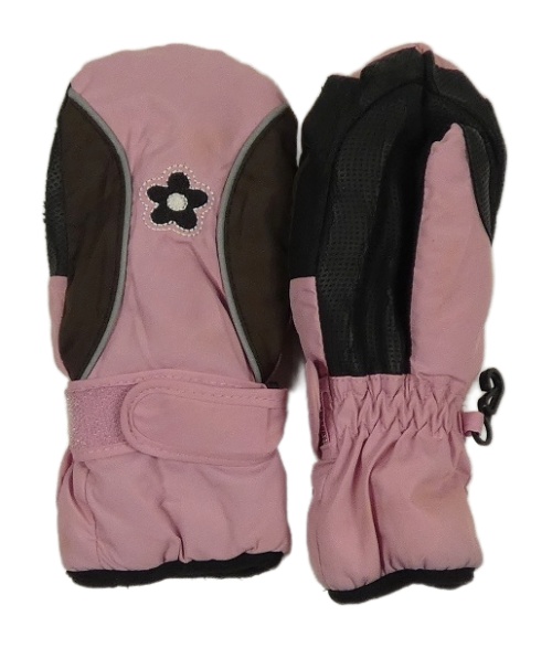 Růžovo-černé šusťákové zimní palcové rukavice s kytičkou Dopodopo