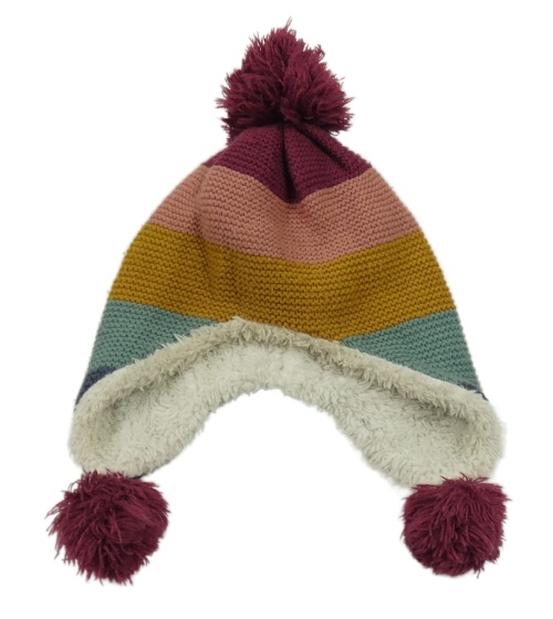 Barevná pruhovaná pletená zateplená ušanka Pusblu