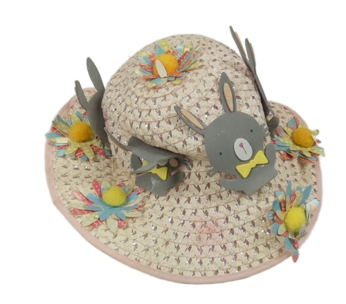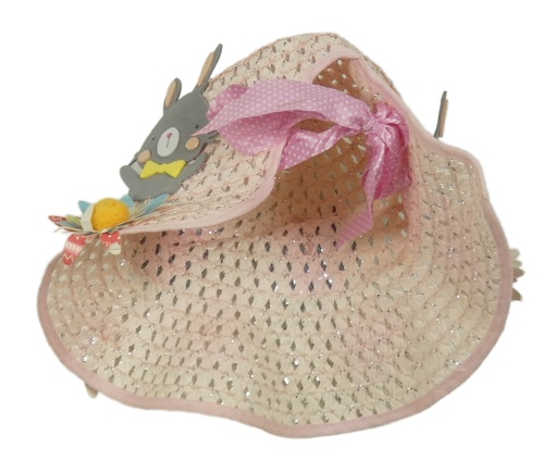 Světlerůžový klobouk s květy a králíčky